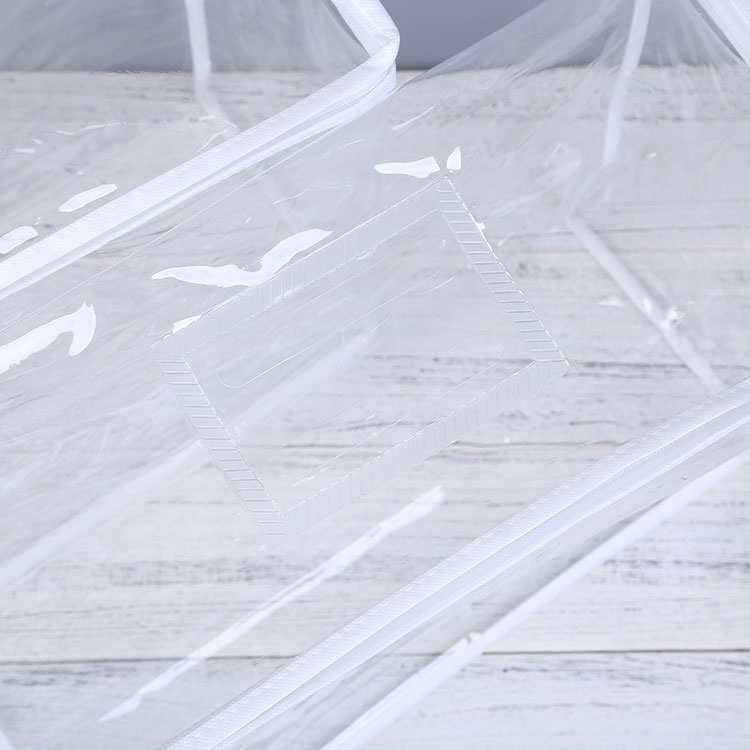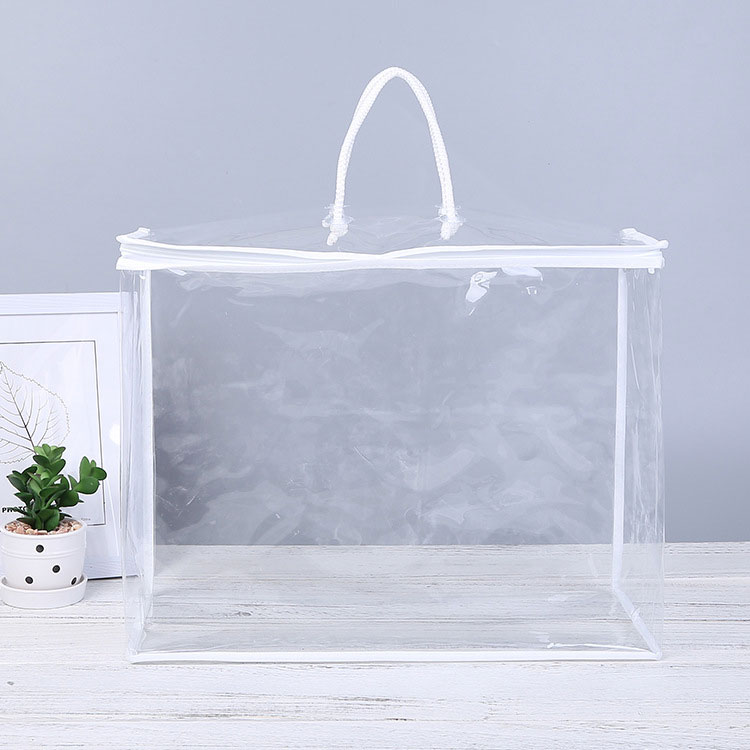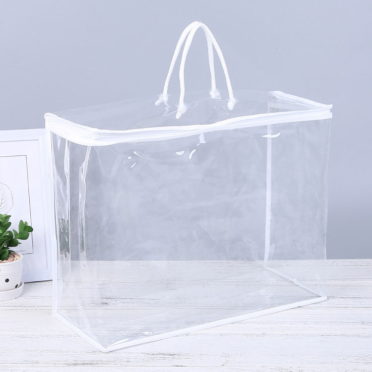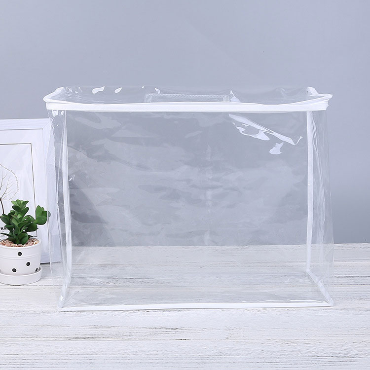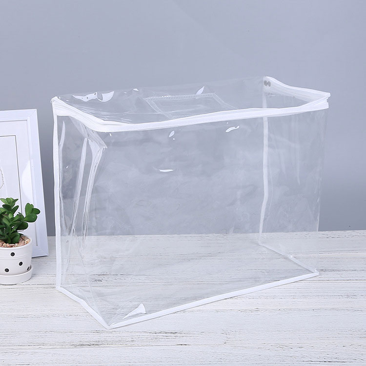 กระเป๋าจัด PVC ของเรา โปร่งใสและทำโดยจักรเย็บผ้า มันมีประโยชน์มากสำหรับการบรรจุผ้าปูที่นอนของคุณ วัสดุเป็นมิตรกับสิ่งแวดล้อมที่ไม่มีกลิ่นฉุนและปลอดสารพิษ มันแข็งแรงพอที่จะถือผ้าห่มหรือผ้าห่มของคุณ