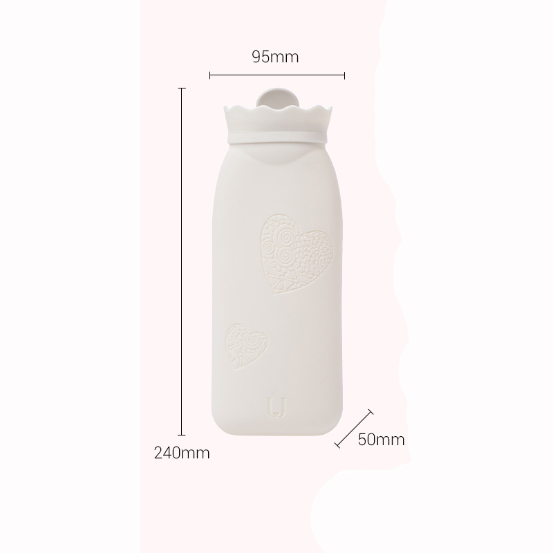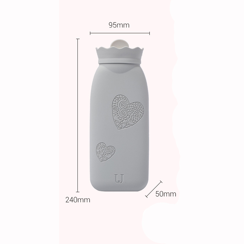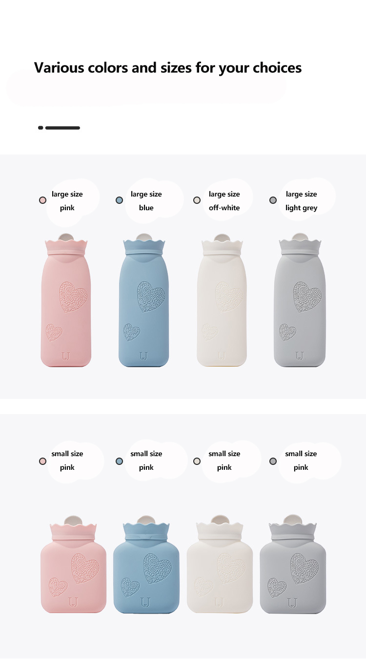 ถุงบรรจุน้ำร้อนแบบยางได้รับการออกแบบให้มีหัวฉีดขวดกว้างซึ่งปลอดภัยกว่าและง่ายต่อการใส่น้ำเข้าและออก กระเป๋าของเรามีความจุสูงสุด 340 มล./525 มล. และแนะนำให้เติมให้เหลือสองในสาม